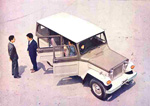 When I get back on my Willys Wagon project, one of the possibilities is importing a Mitsubishi four door wagon and putting new running gear under it. Paul Barry has a two door Mitsubishi wagon up at Willys America. I want to get up there to take a look at it before proceeding. He says it is noticibly smaller than the US spec since it is built on the CJ3B frame and it isn't all that well made. I'd also want to replace the flat grille with the later pointed style so have to figure out what work that would entail.